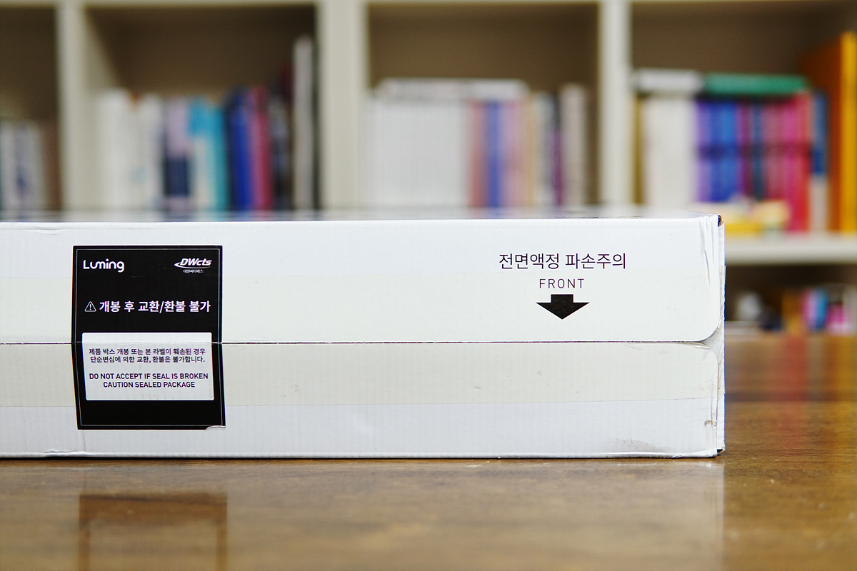 박스에는 제품의 특징이 잘 표시되어 있으며 위쪽으로는 봉인 스티커가 부착되어 있습니다. 모니터를 개봉할 때를 위해 액정의 방향이 표시되어 있으니 꺼낼 때 꼭 주의하세요. ^^