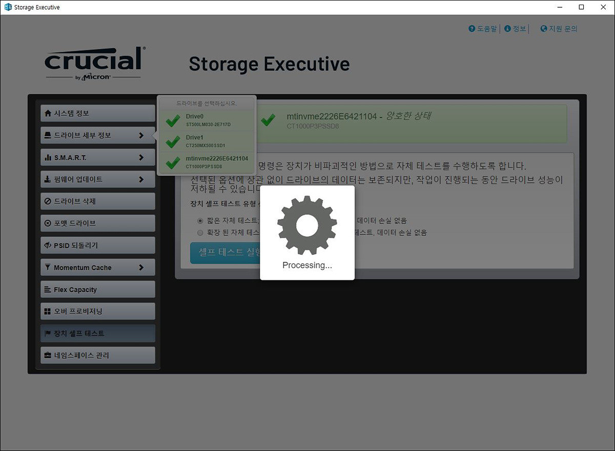 셀프 테스트로 SSD의 상태를 측정할 수 있습니다.