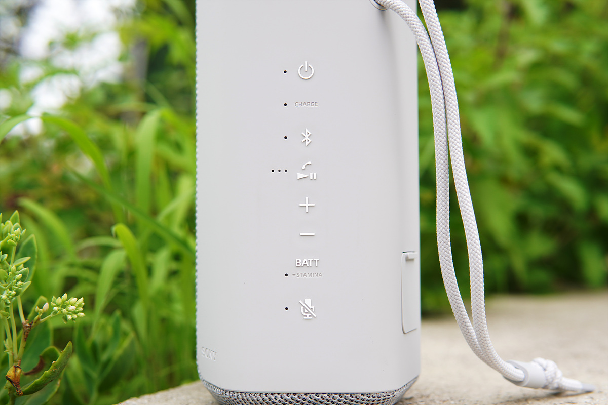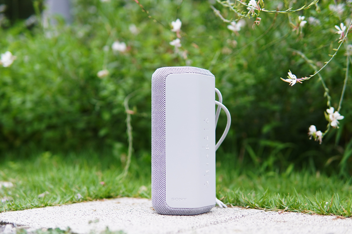 실내에서 사용하는 스피커의 경우 알루미늄이나 메탈 재질도 괜찮지만 실외에서 사용할 때는 작은 충격에도 찌그러지거나 스크래치가 나기 때문에 적합하지 않습니다. SRS-XE200은 고무와 메시로 되어있어 충격이나 스크레치에도 좋은 효과를 보이며 무엇보다 IP67 등급의 방진 방수로 물놀이를 갈 때도 전혀 부담이 없습니다.