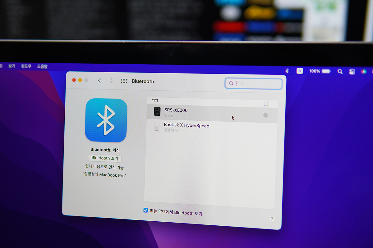 노트북으로 음악을 듣고 있다가 전화가 오면 재생을 멈추고 자동으로 전화(스피커, 통화)로 전환이 되며 통화가 끝나면 다시 노트북에서 음악을 들을 수 있습니다.