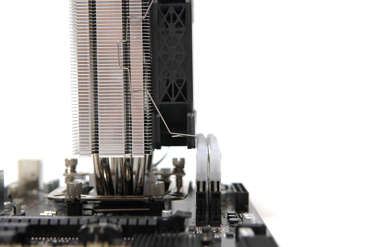 일반적인 클립 방식으로 쿨러를 고정하고 있습니다.