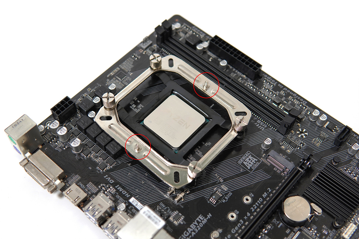 고정하는 나사가 쿨러에 가려지게 되므로 미리 쿨러를 빼두는 게 좀 더 편리합니다. 쿨러를 장착하고 나사를 고정할때는 약간 힘을 줘서 누른 상태로 돌려야 합니다.