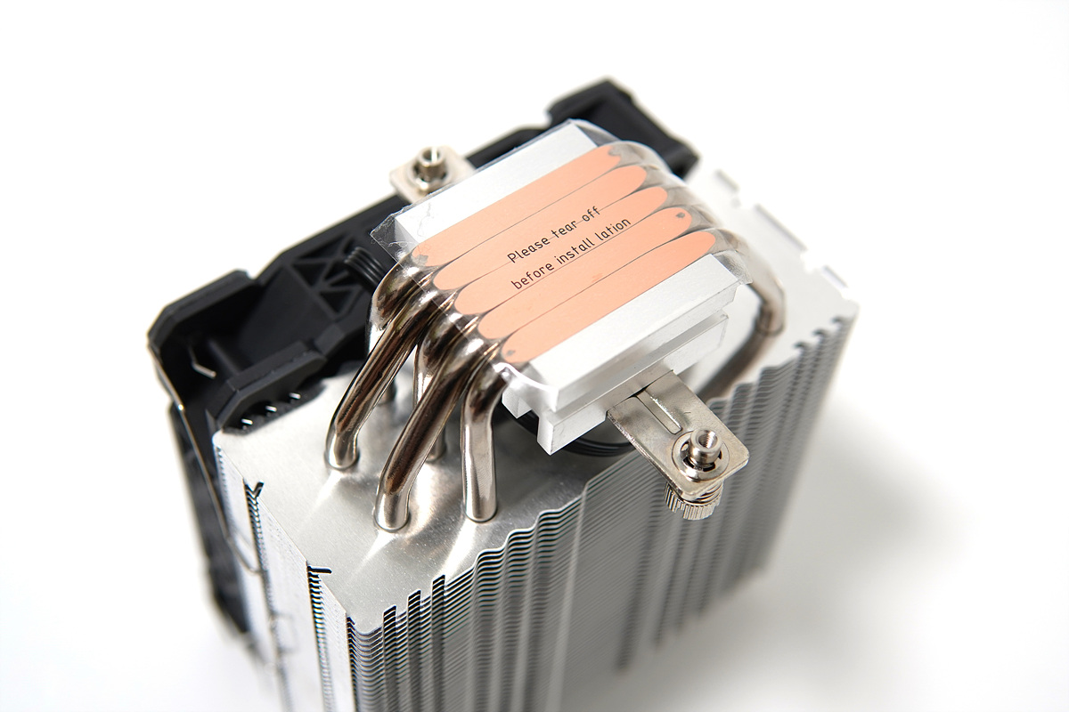 히트 파이프는 CPU와 바로 맞닿게 설계되었으며 스크래치 방지를 위해 보호 필름이 부착되었습니다. 쿨러 장착하기 전에는 반드시 저 필름을 제거해야 합니다. 필름을 제거하지 않고 장착하는 사고가 은근히 많이 일어납니다.