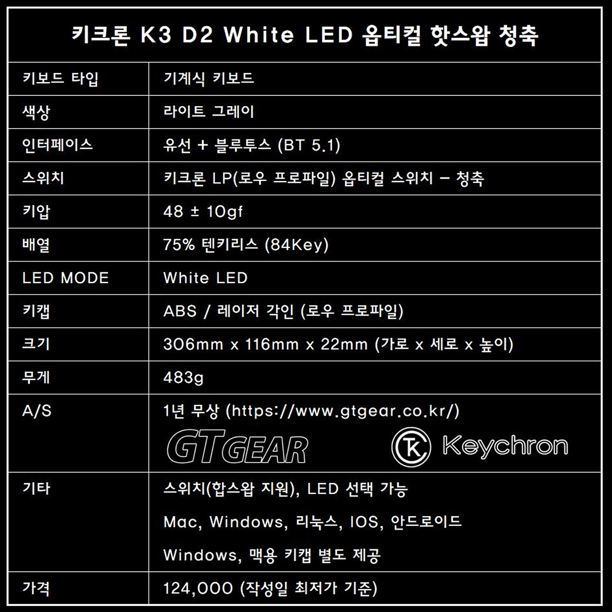 ◆ 키크론 K3 D3 화이트 LED 영상