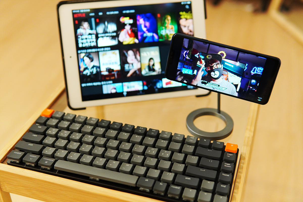 IOS, 안드로이드 구분 없이 사용할 수 있습니다. 넷플릭스나 유튜브에서 검색할 때는 터치보다 키보드로 입력하는 게 훨씬 더 빠르고 편리합니다. ^^