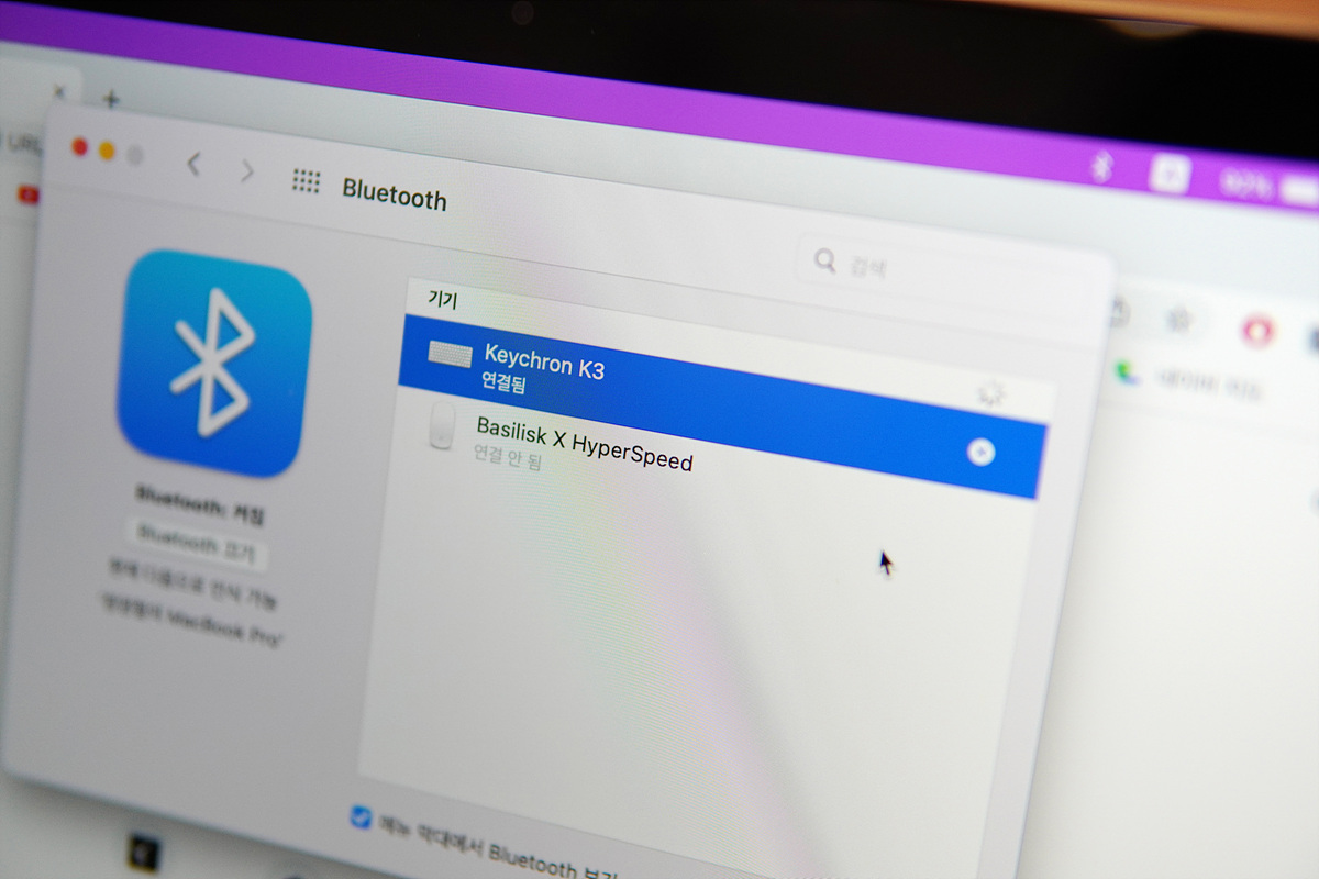 맥북에서 Keychron K3를 확인 후 등록할 수 있습니다.