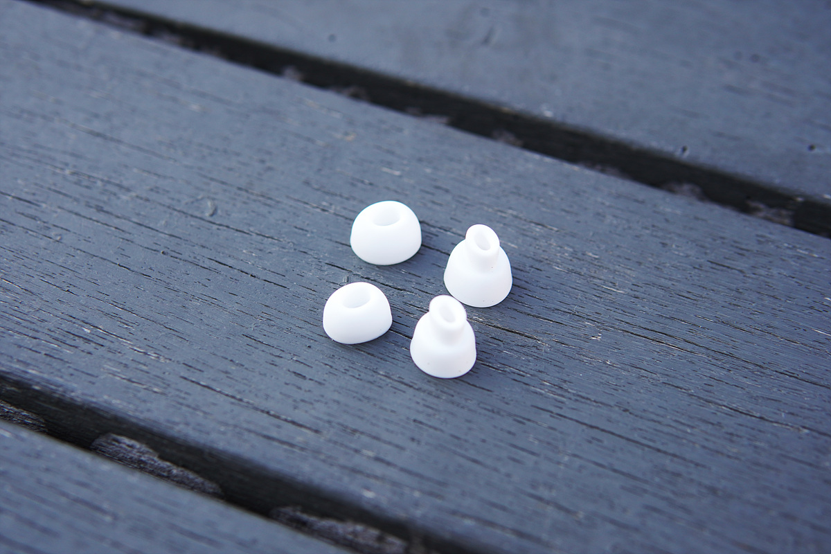 이어팁의 노즐 부분은 타원형으로 되어있으며 이어팁의 기둥 부분이 단단하지 않고 좀 말랑말랑 한 편입니다. 개선판(Refine)이지만 하우징과 마찬가지로 이어팁 역시 그대로 적용이 되었습니다. 이어버드에는 두 개의 마이크와 함께 이압을 줄이기 위한 별도의 홀(hole)이 있습니다.