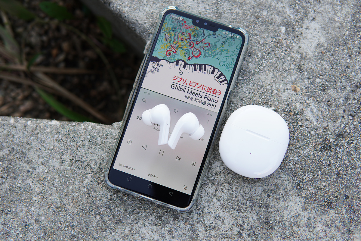 이어버드는 좌우 구분 없이 모두 단독으로 사용할 수 있으며 착용 감지 센서와 노이즈 캔슬링은 지원하지 않습니다. (가격을 생각한다면 이해가 됩니다.) 터치가 되는 부분이 약간 애매해서 적응하는데 시간이 조금 걸리더군요.