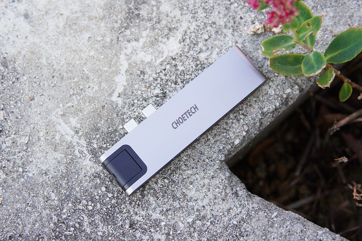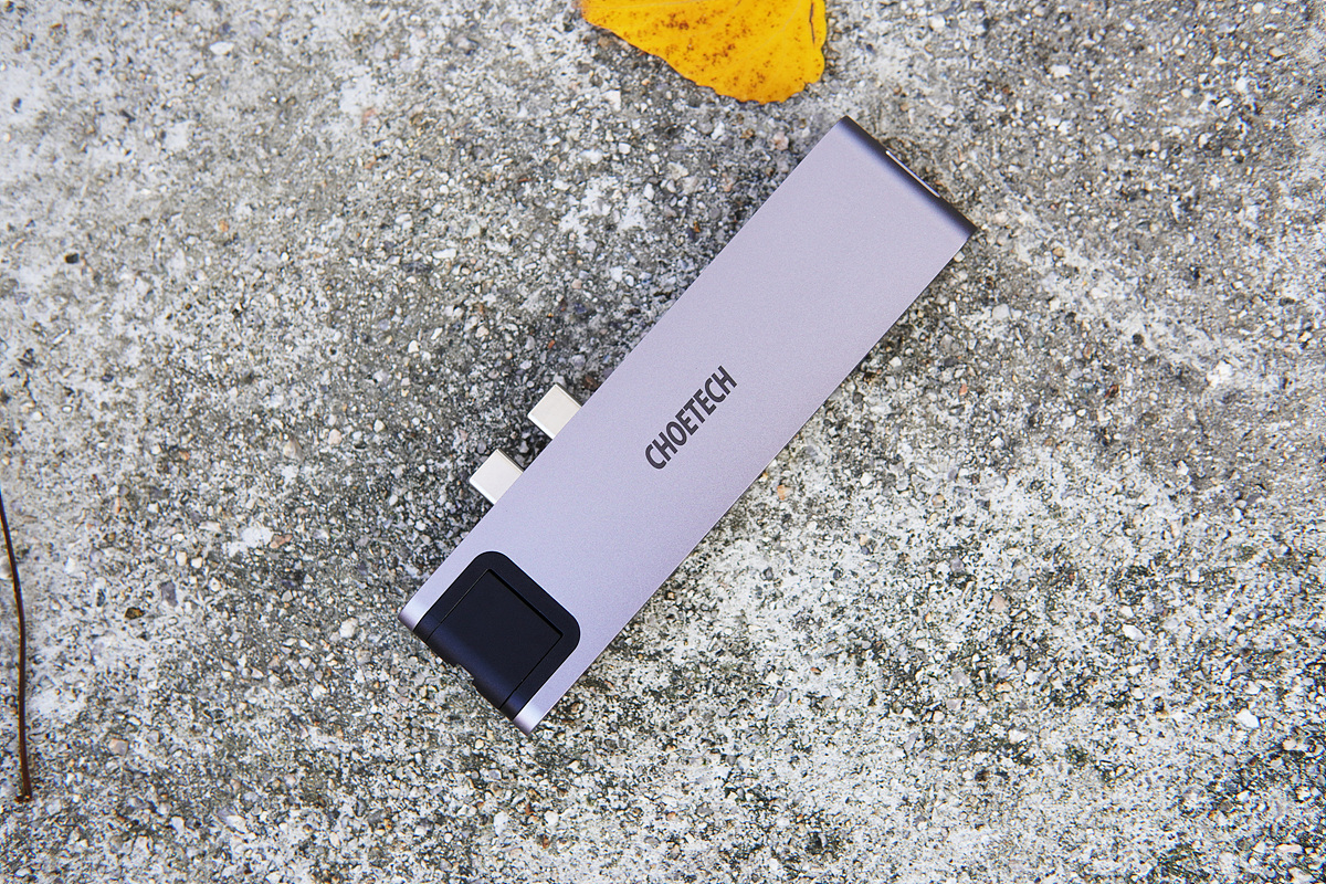 일반적으로 사용하는 허브와 비슷하지만 Type-C 포트가 두 개가 있어서 확실하게 구분이 됩니다. 애플 기기의 스페이스 그레이와 같은 색으로 디자인도 마음에 들었습니다.