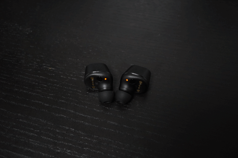 이어버드는 좌우 표시가 되어있으며 착용 감지센서가 있어서 이어버드를 귀에서 뺄 경우 음악이 일시 정지되고 다시 장착하면 자동으로 재생되므로 상당히 편리하게 사용할 수 있습니다. 이 기능은 전용 앱에서 바꿀 수 있습니다.