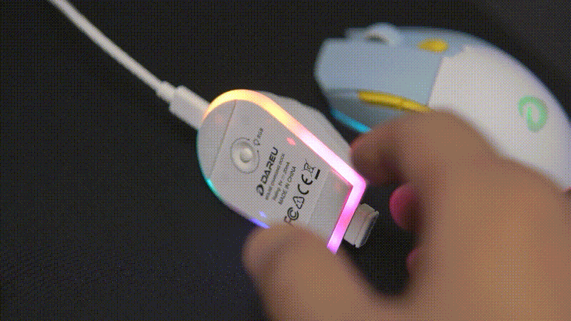 마우스와 독(dock) 바닥에서는 RGB LED가 켜지며 마우스에 있는 다얼유 로고는 DPI에 따라 색이 바뀝니다.