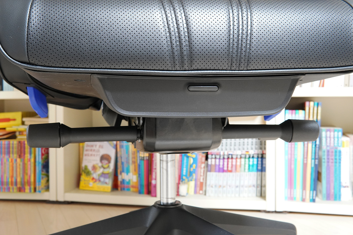왼쪽 레버 - 좌판 깊이 조절 / 오른쪽 레버 - 높이 조절