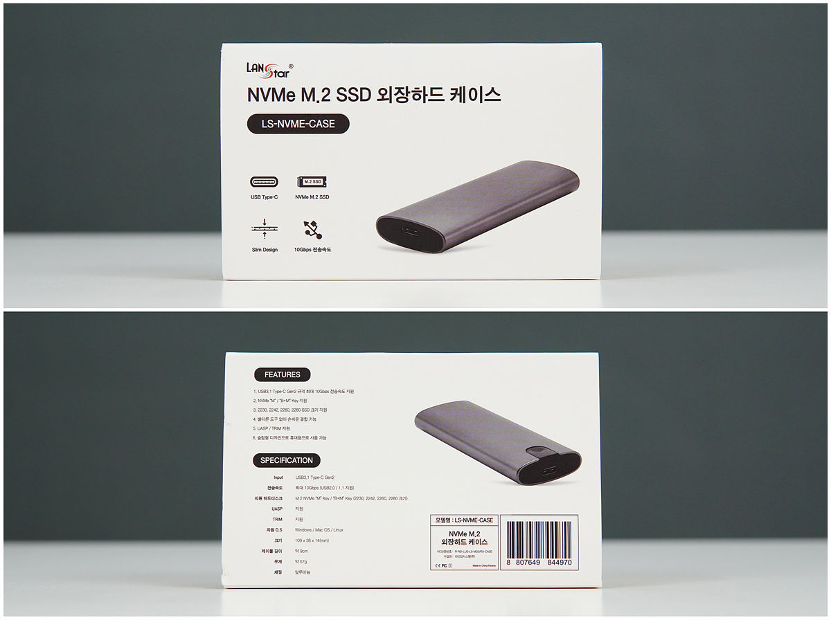 PC에 장착해서 사용하던 장치를 외장형으로 바꿔주는 케이스들은 HDD에서도 많이 사용이 된 것처럼 SSD 역시 같은 개념이지만 저장기기가 HDD에서 SSD로 바뀌면서 크기와 방식이 바뀌었습니다. LS-NVME-CASE의 모델명에서도 확인할 수 있듯이 SATA가 아닌 NVMe SSD만 장착할 수 있으며 SSD의 크기는 2230 / 2242 / 2260 / 2280로 현재 판매되거나 사용되는 대부분의 SSD를 사용할 수 있습니다. 22110까지 되면 좋겠지만 사용자도 거의 없을뿐더러 케이스의 크기가 커지게 되니 효율을 위해서는 제외하는 게 더 좋다고 생각합니다.