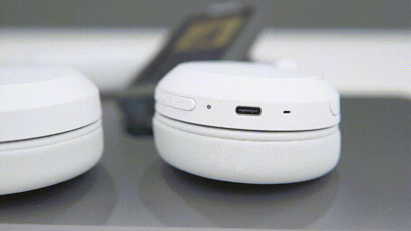 오른쪽에는 재생과 페어링을 위한 버튼이 있으며 옆으로는 상태표시 LED, Type-C 충전 단자가 있습니다.