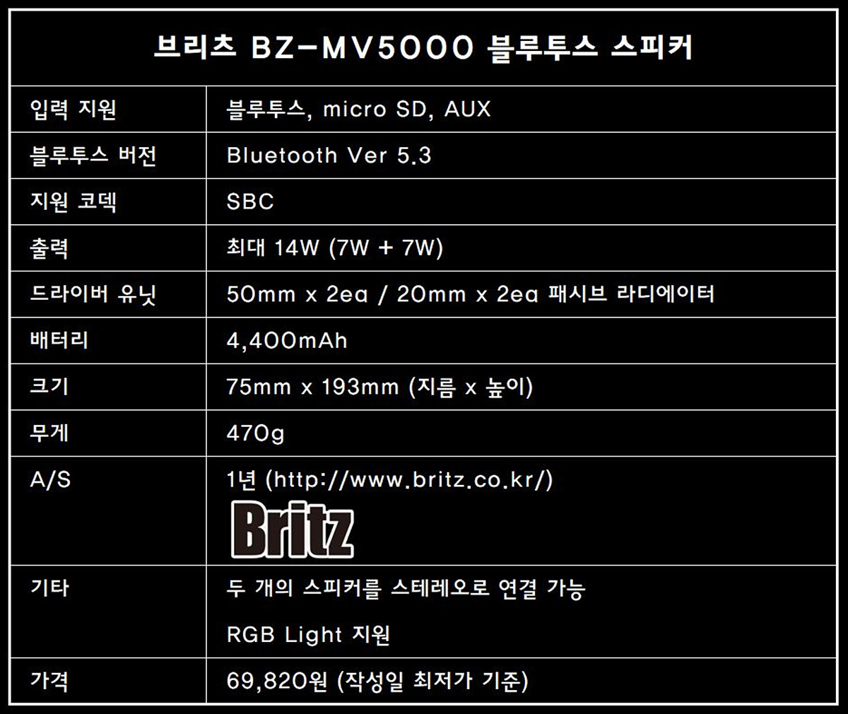 봄 나들이 갈때 챙기세요. 브리츠 BZ-MV5000 블루투스 스피커
