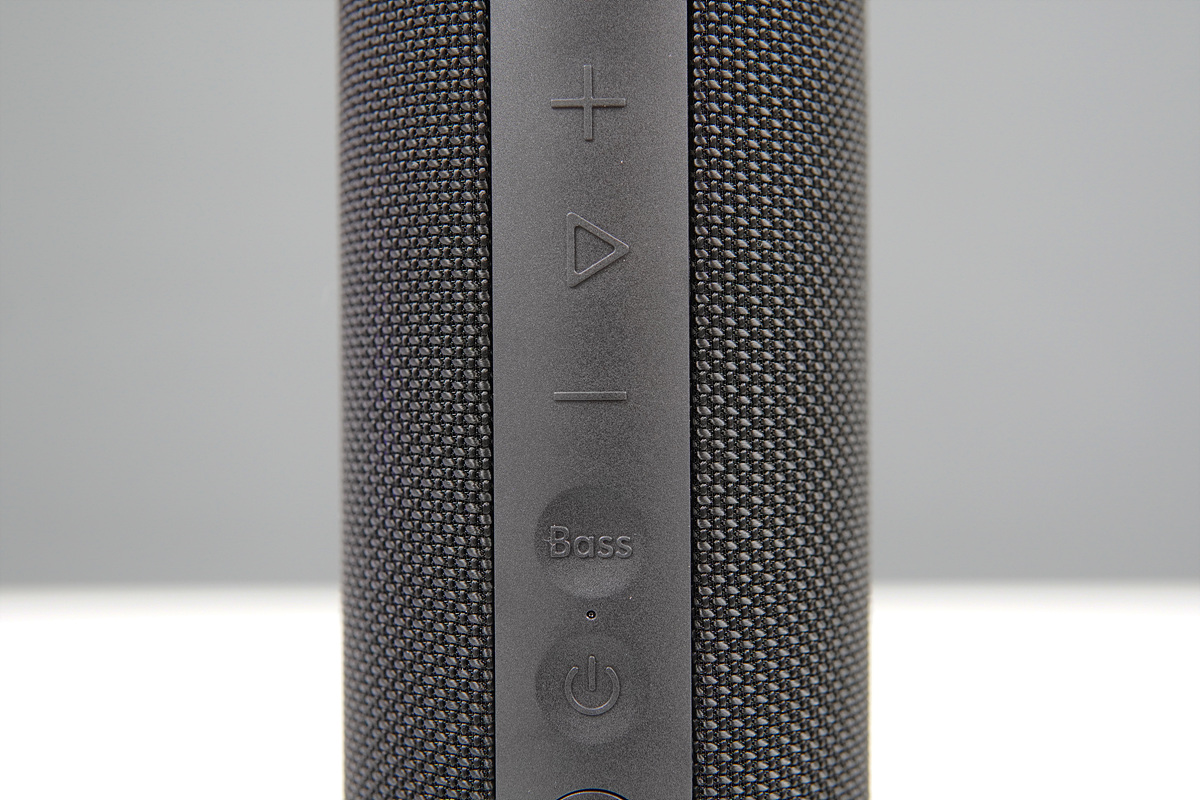 가운데에 전원을 비롯한 기능 버튼이 있으며 Bass로 EQ를 조절할 수 있습니다.