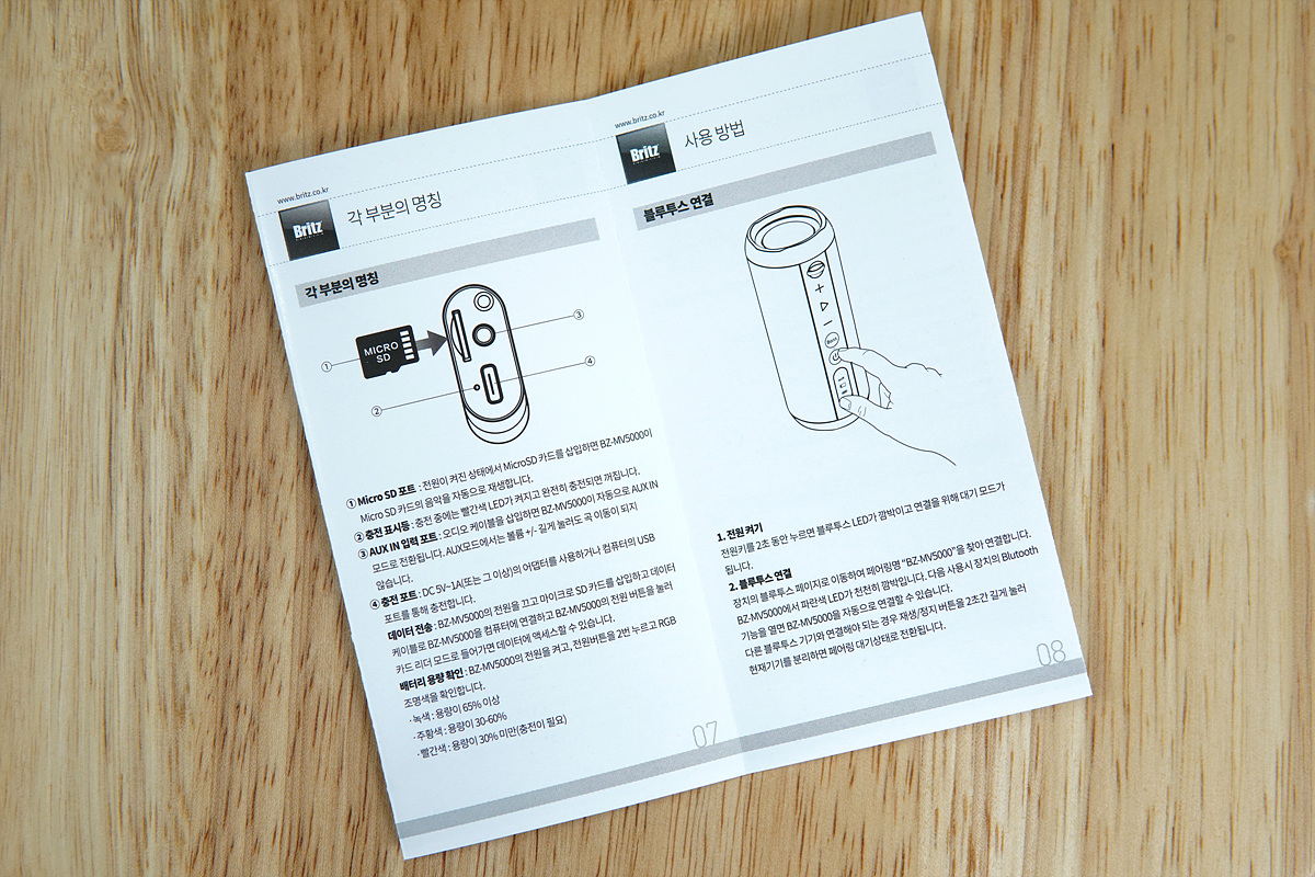 microSD 카드에서는 mp3파일뿐 아니라 flac 파일도 재생할 수 있어서 살짝 놀랐습니다. 이 부분은 전혀 기대하지 않았던 부분이라서요. 스피커를 세우거나 눕혀서 들을 때의 차이는 크지 않아서 취향에 맞게 사용할 수 있으며 추가적으로 두 개의 스피커를 좌우 스테레오 모드로 사용할 수 있는 부분은 인상적이었습니다. 한 개만 제공받아서 이 부분은 직접적으로 테스트해보지 못했지만 다른 제품을 사용해 보니 꽤 만족스러웠습니다.