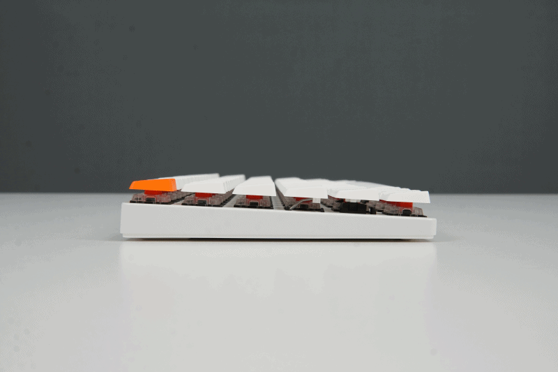 키캡 역시 높이가 낮인 LP 타입이며 ABS 재질로 되어있습니다. 검은색 키캡은 지문이나 유분으로 번들거림이 쉽게 나타나지만 흰색이라 이런 부분에 있어서는 조금 더 좋지만 그래도 PBT 재질이 아닌 점은 많이 아쉬웠습니다. 체리, OEM 방식의 키캡과 달리 LP 키캡은 따로 구매하기가 쉽지 않아서 다로 교체하기가 쉽지 않으니까요.