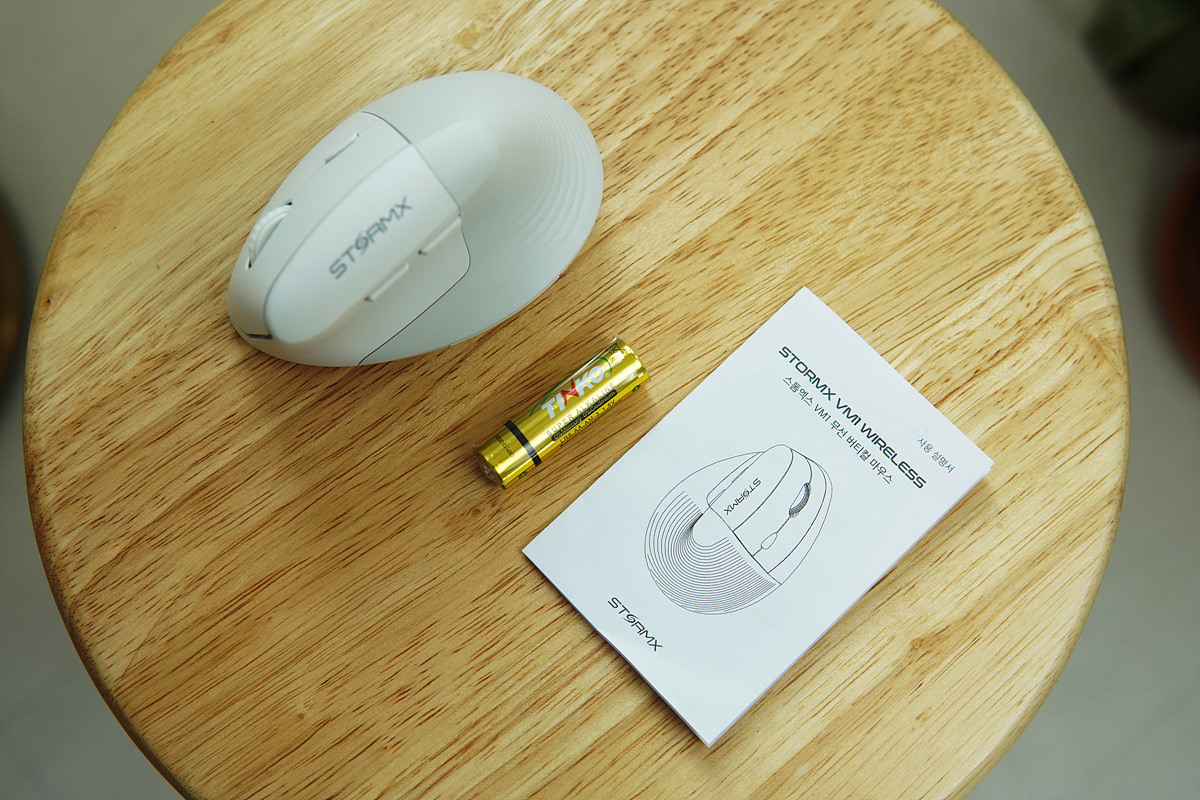 STORMX VM1 마우스는 AA 배터리 포함 115g으로 다소 무서운 무게를 가지고 있지만 마우스의 외형이나 그립을 생각한다면 무게로 인한 불편함은 없었습니다. 뒤로 / 앞으로 가기의 엄지 버튼에만 무소음 버튼이 아닌 일반 스위치를 사용한 게 아쉬웠지만 나머지 버튼들은 사무실뿐만 아니라 공공장소에서도 사용하기에도 적당한 소음이었습니다. 일반적으로 사용하는 마우스들보다 조금 더 조용한 클릭음을 원하는 분들이나 손목 건강을 위해 버티컬 마우스를 고려 중인 분들에게는 잘 맞는 제품이라 생각되네요. 2만 원 초반대로 예상되는 가격을 생각한다면 가성비 역시 꽤 좋은 제품이라 생각합니다.