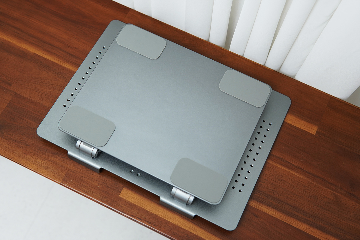 스탠드는 알루미늄 재질이라 노트북이 닿는 부분이나 바닥에는 모두 실리콘으로 마감이 되어있으며 애플의 스페이스 그레이와 상당히 비슷한 느낌입니다.