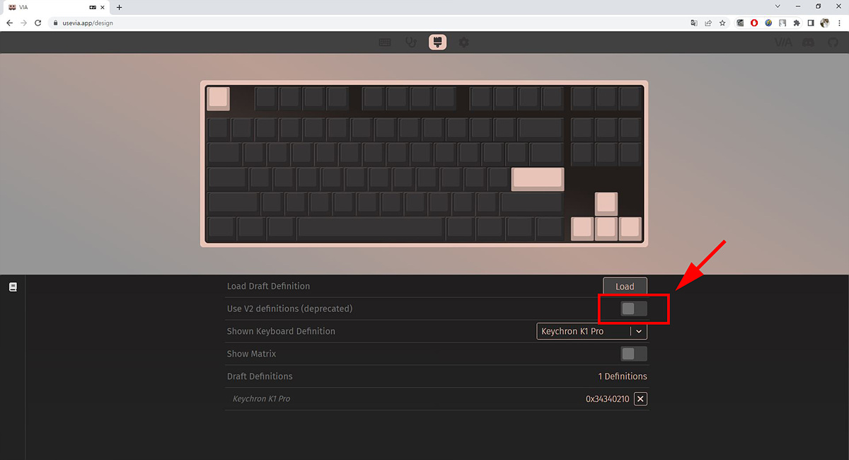 설명대로 따라 했는데도 키보드 인식이 안되길래 빨간색 상자 부분을 다르게 적용(off)했더니 바로 인식이 되네요. 홈페이지의 안내를 따라 해도 안된다면 "Use V2 definitions" 부분을 On -> Off로 바꿔보시기 바랍니다.