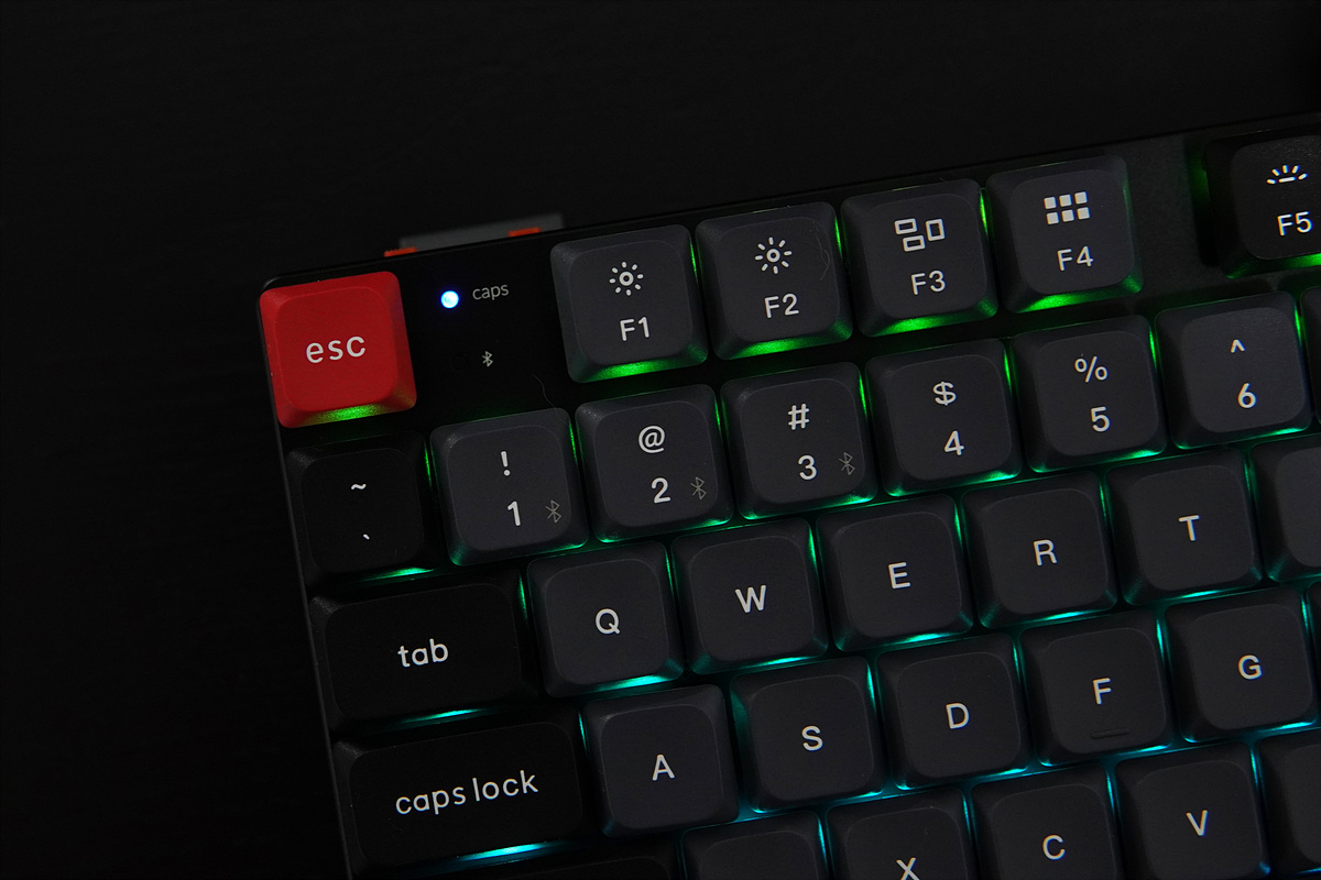 블루투스 연결과 caps Lock를 확인할 수 있는 상태 표시 LED는 Esc 키 옆에 자리를 잡고 있습니다. 단색이 아닌 RGB LED를 지원하는 키보드의 경우 Caps Lock를 확인하기 힘든 경우가 많은데 이렇게 따로 배치를 하니 한눈에 파악할 수 있어서 꽤 편리했습니다.