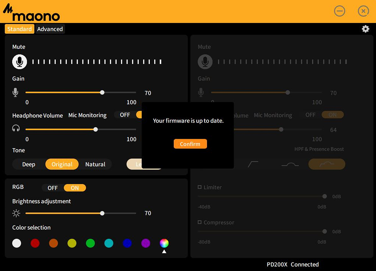 마이크의 펌웨어를 확인 / 업데이트할 수 있으며 마이크가 연결된 상태에서만 프로그램을 사용할 수 있습니다.