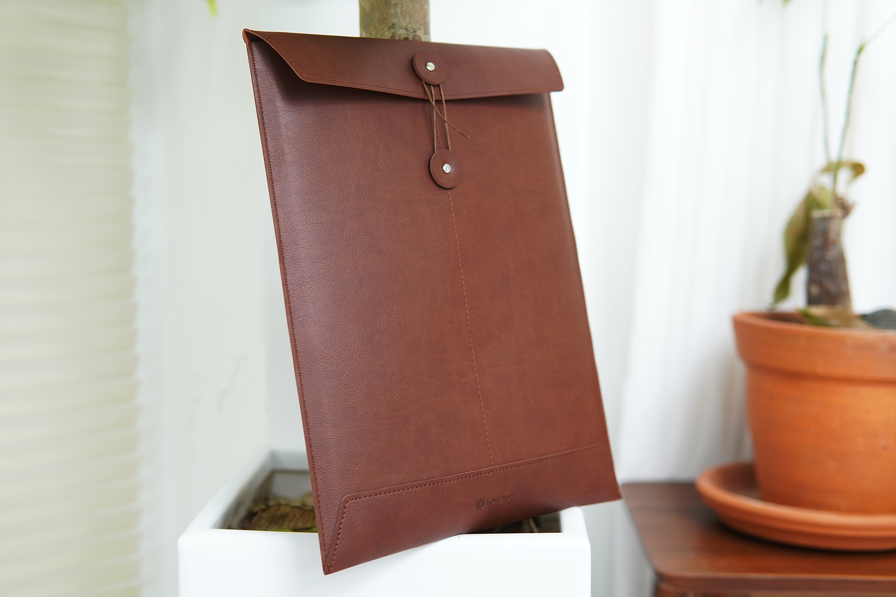 가죽 파우치의 크기는 240mm x 310mm로 간단한 서류나 태블릿을 보관하기 좋으며 LP 타입의 키보드를 수납하기에 적당해 보입니다. 혹시나 하고 13인치 맥북 프로를 넣어봤는데 딱 맞더군요.