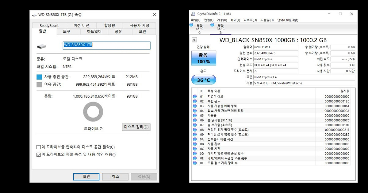 Crystal Disk Info로 SN850X의 정보와 상태를 확인할 수 있습니다.