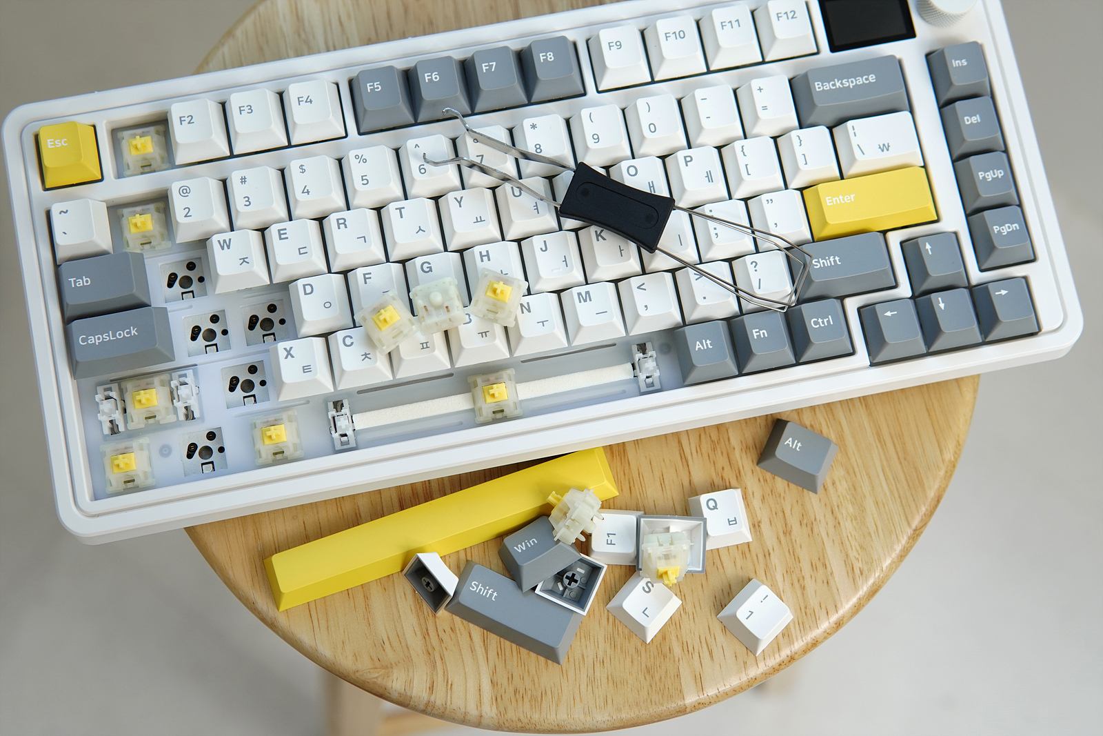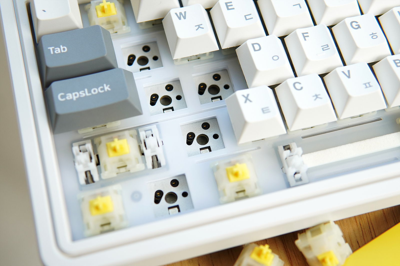 기본 구성품에 포함된 리무버로 키캡과 스위치를 분리할 수 있는데 제품(기판)의 특성인지 키캡의 특성인지 키캡을 분리하면 스위치까지 딸려오는 경우가 많았습니다.