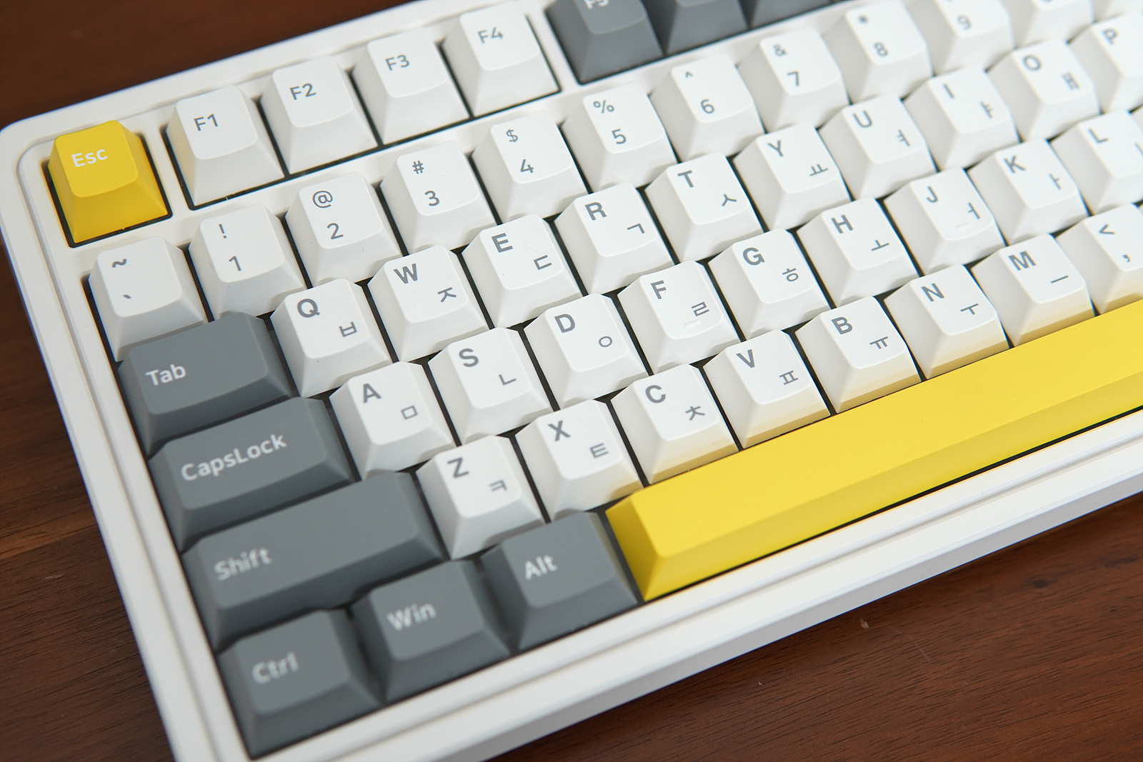 104 key의 풀배열이나 텐키리스에 비해 크기는 작지만 배열이 조금 달라서 이런 부분은 사용자에 따라 호불호가 나뉘는 부분입니다. 방향키와 오른쪽 Ctrl, Fn, Alt 키는 일반키와 같은 크기(1U)로 되어 있습니다.