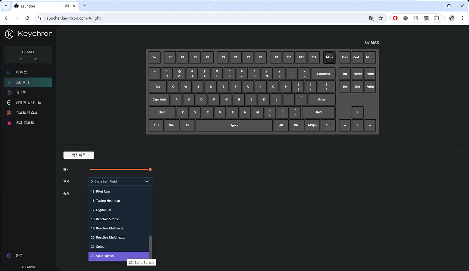 LED는 키보드에서도 바꾸거나 설정할 수 있지만 키크론 런처로 바꾸는 걸 추천합니다.