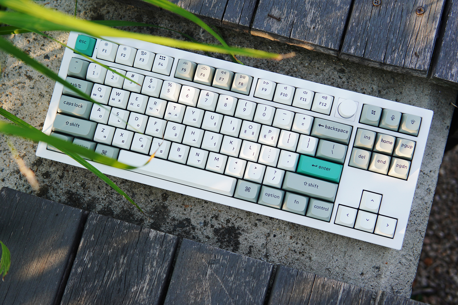 Esc, Enter 두 개의 키캡은 초록색으로 포인트를 주고 있습니다. 키보드를 좋아하는 분들이라면 아시겠지만 이렇게 포인트 키캡 한 두 개 만으로도 키보드 느낌이 확 달라지게 됩니다.