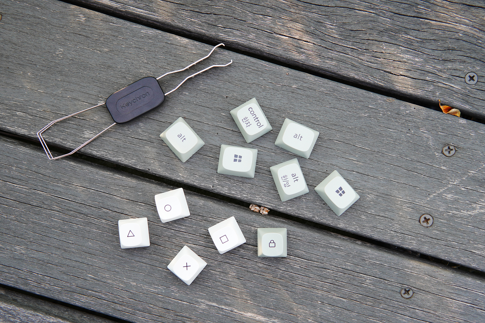 키크론 키보드들의 특징이라고 할 수 있는 Win / Mac용 추가 키캡과 스위치, 키캡 리무버입니다.