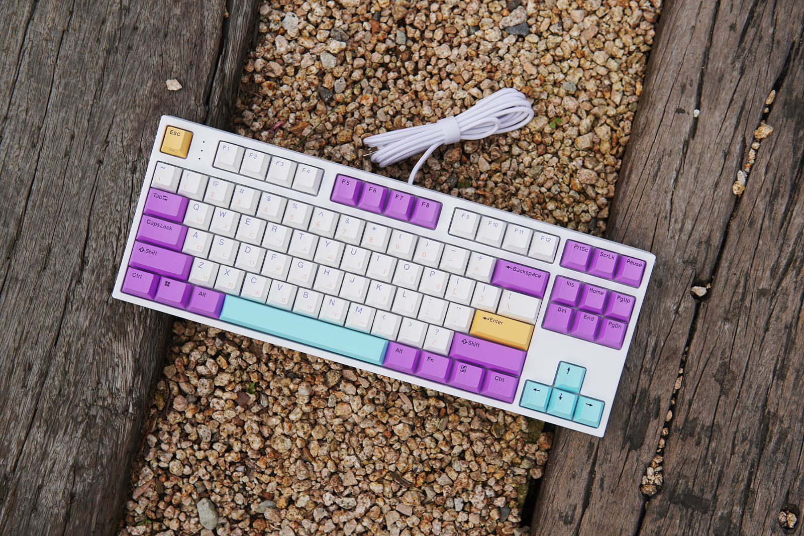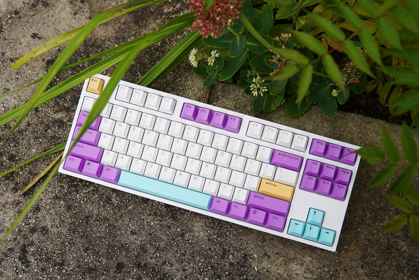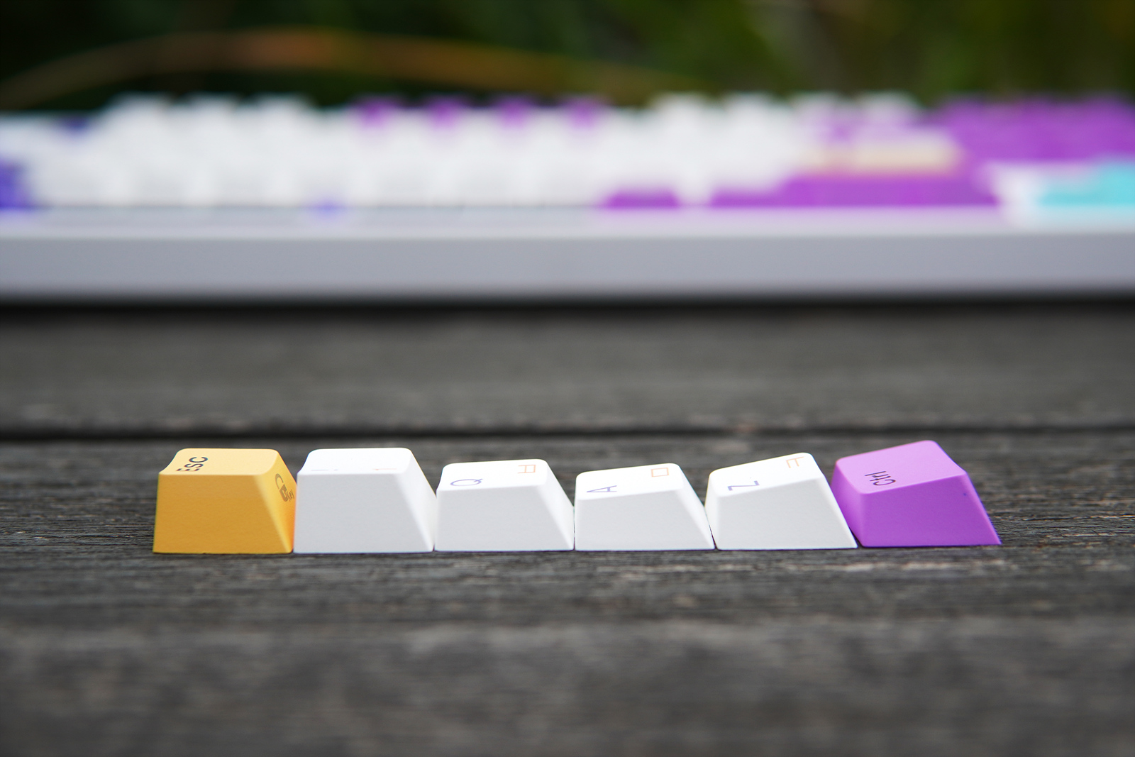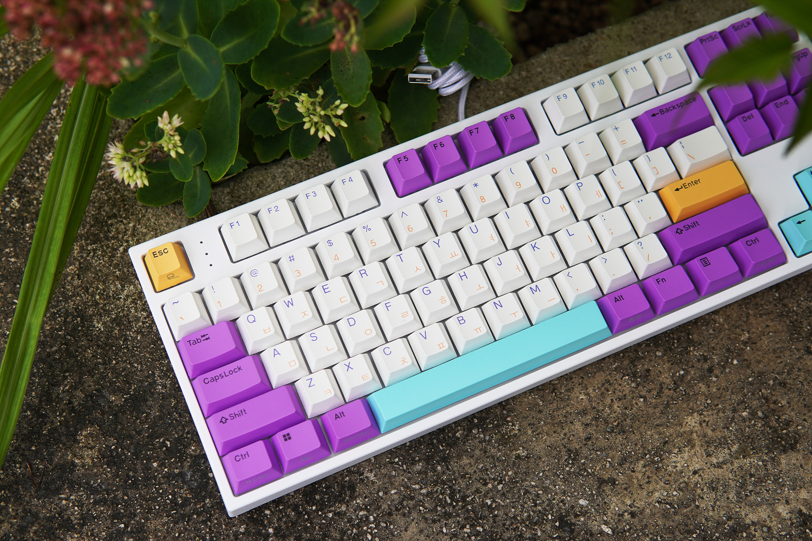 키캡의 높이 역시 부담스럽지 않은 체리 프로파일입니다. 노란색 포인트 키캡과 보라색의 모디열 디자인(색)은 확실히 좋은 느낌이었습니다. 개인적으로 키캡의 배색은 마음에 들었습니다.