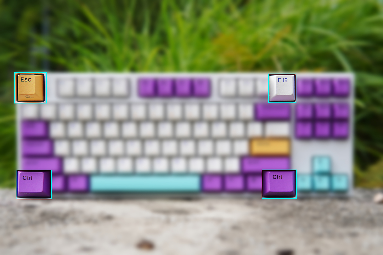 Ctrl(좌) + Esc + Ctrl(우) + F12 : 5초간 누르면 키보드가 초기화됩니다. 키보드 리셋은 4개의 키 입력뿐 아니라 순서를 지켜야 하니 꼭 기억하시기 바랍니다.