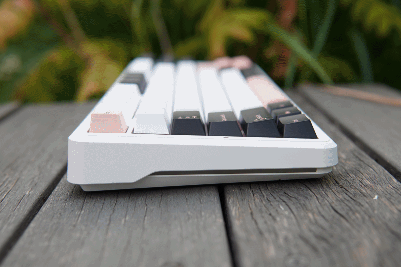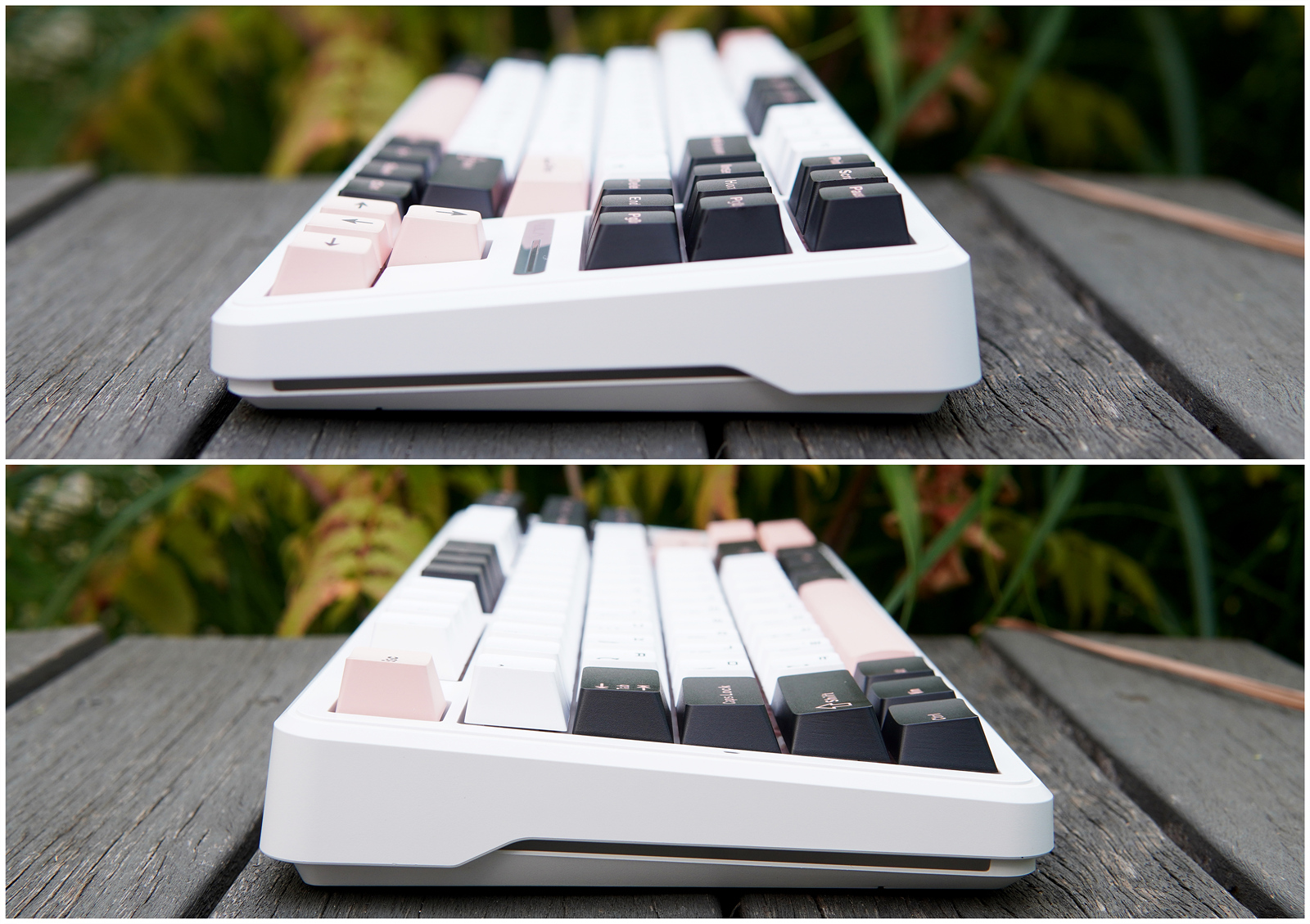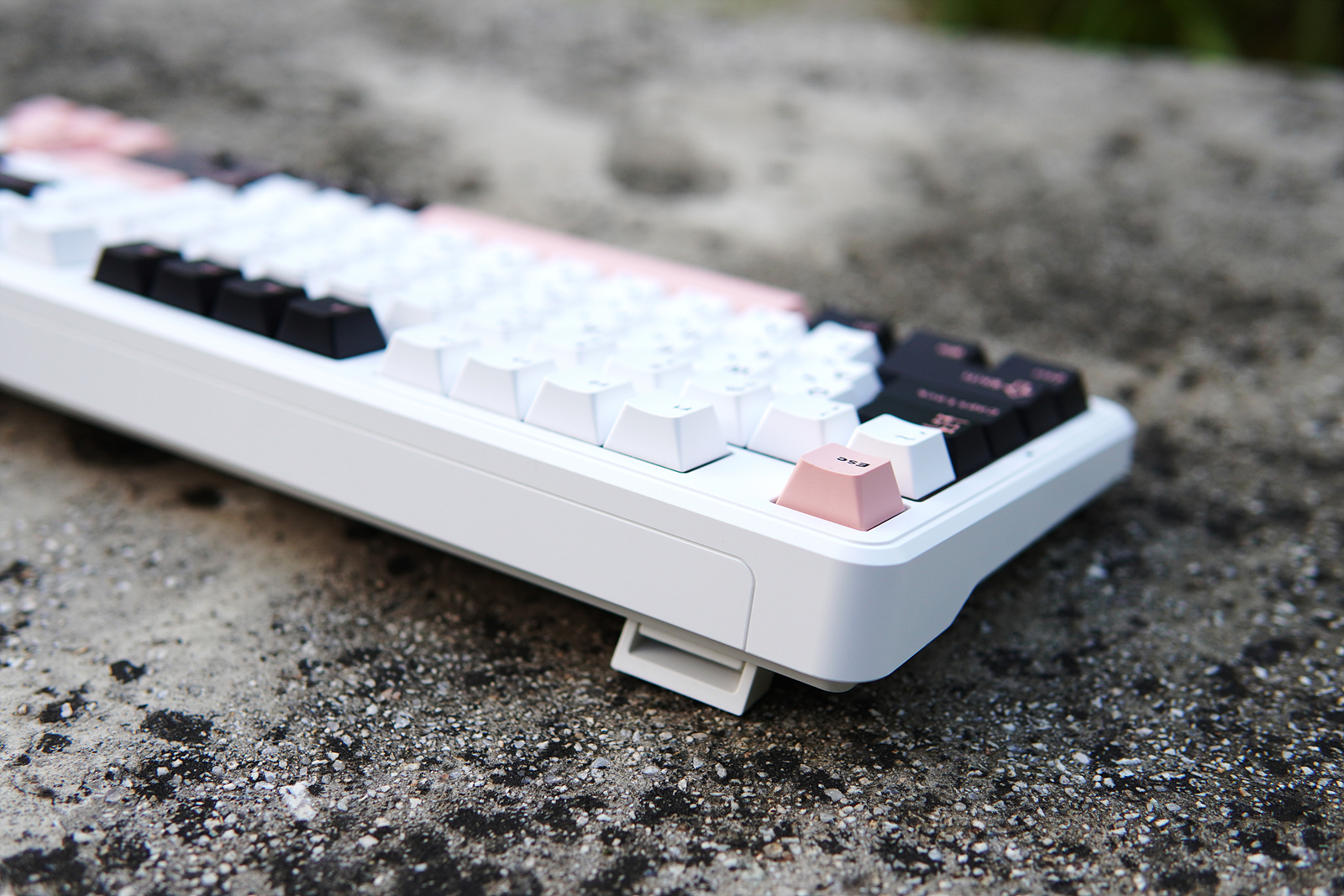 키보드 하우징 모서리 부분은 동그랗게 모따기가 되어있는데 약간 올드한 느낌이 들더군요. 개인적으로는 좀 더 각진 디자인인이 낫다고 생각합니다. 그래도 핑크색 키캡으로 포인트를 준 부분은 좋았습니다. 키보드 디자인은 아주 좋은 편은 아니지만 그래도 이 정도면 나쁘지는 않다고 생각합니다.