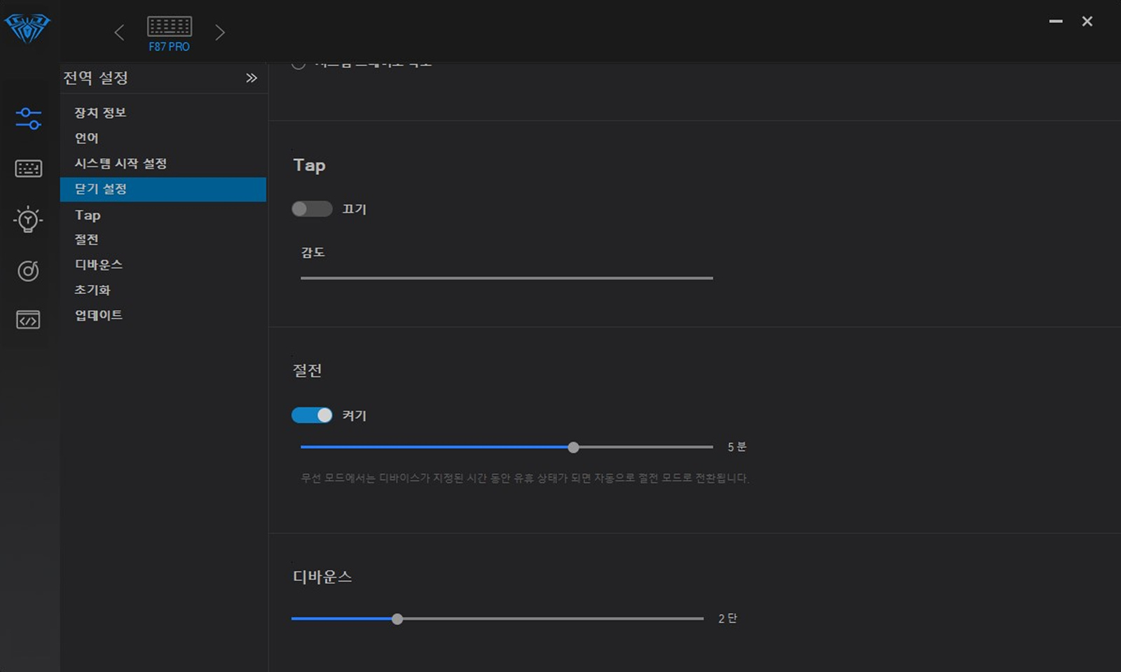 F87 Pro 독거미는 VIA는 아니지만 전용 소프트웨어를 통해 다양한 설정이 가능합니다.