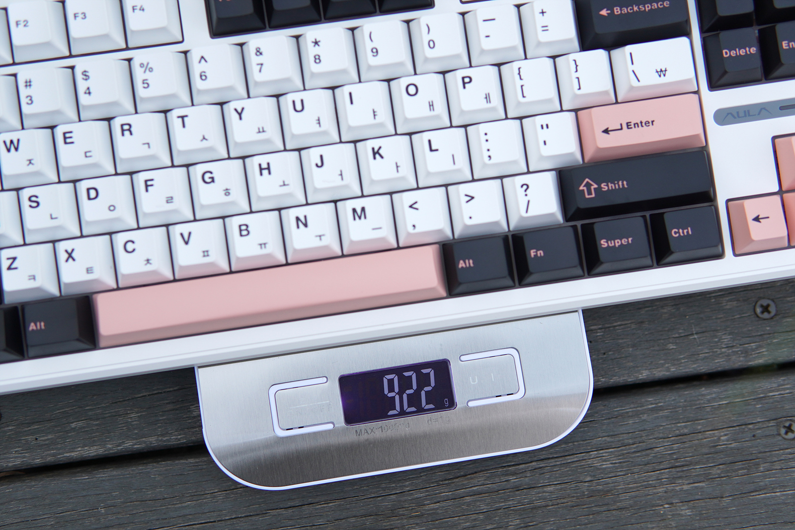 키보드와 수신기를 포함한 무게는 922g로 측정되었습니다.