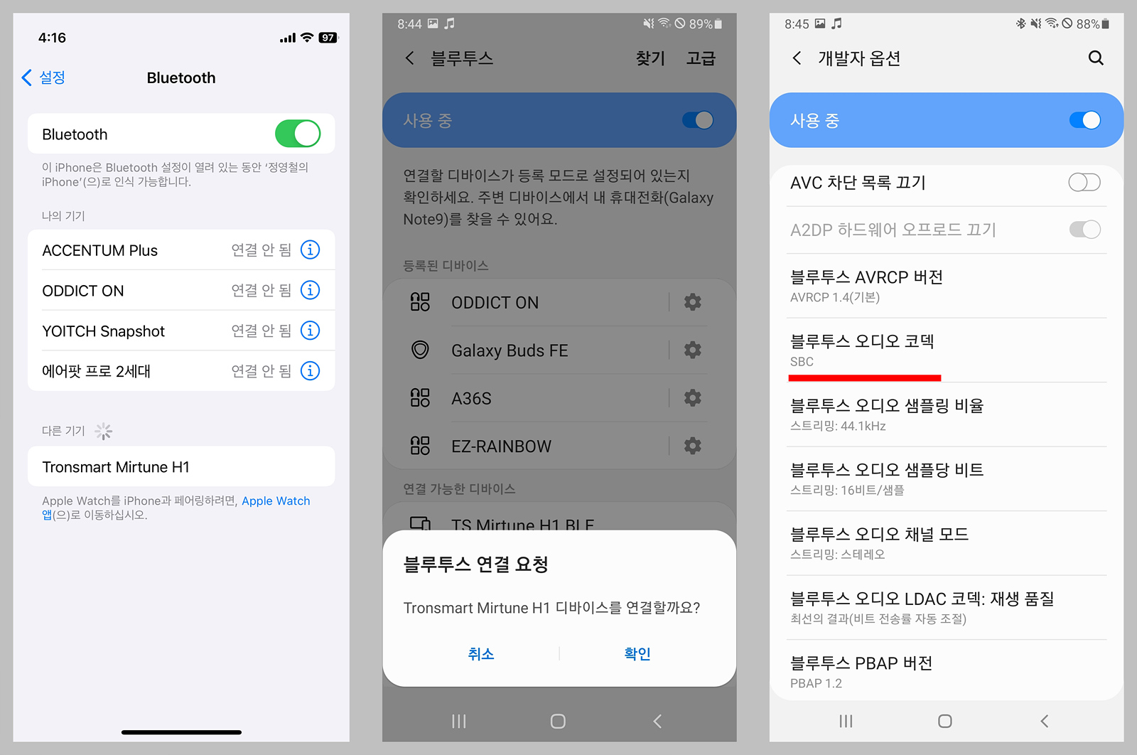 다른 블루투스 기기들과 마찬가지로 쉽게 등록할 수 있으며 코덱은 aptX, AAC가 아닌 SBC만 지원하고 있습니다. 블루투스 음향기기들을 소개할 때마다 언급하는 부분이지만 코덱에 따른 음질의 차이는 아주 적은 편이고 H1의 위치(가격)를 생각해 보면 이 부분이 단점이라고 생각하지는 않지만 라디오가 아닌 스피커라면 AAC정도는 지원해야 한다고 생각합니다. (단점이 아닌 개인적인 취향입니다. ^^)