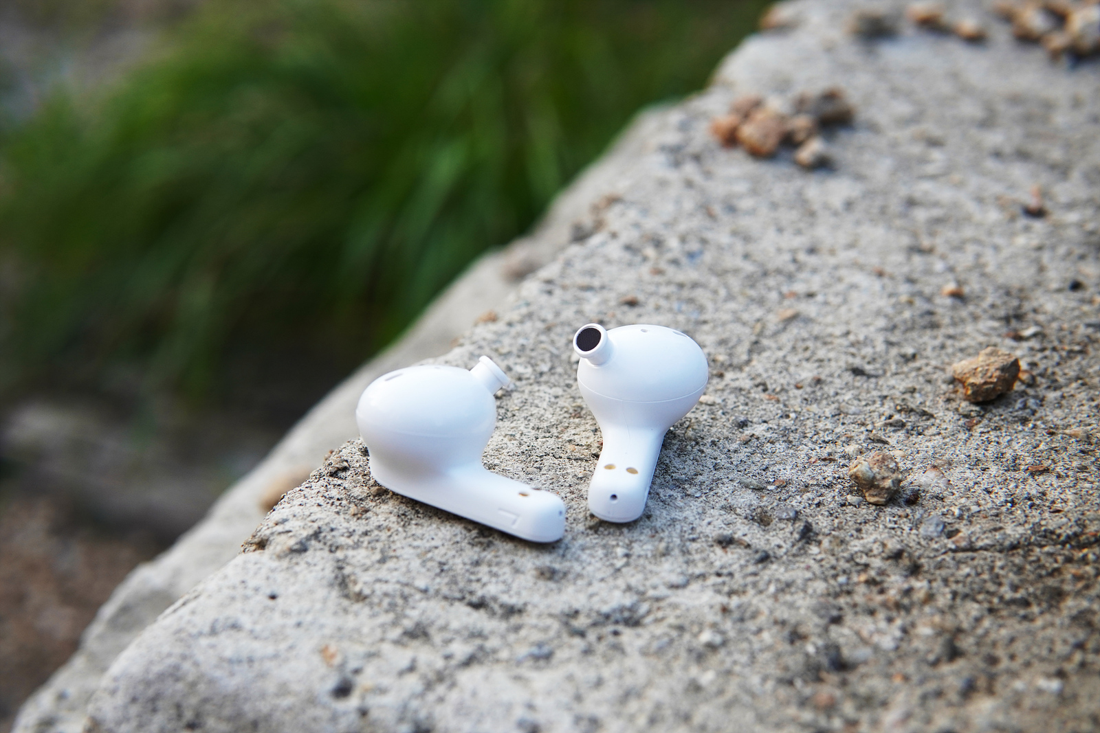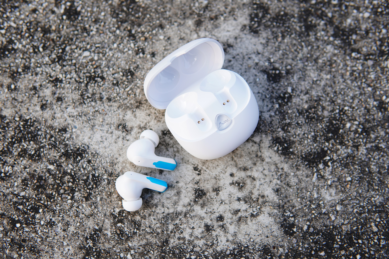 BZ-EV7는 액티브 노이즈 캔슬링을 위한 내부의 마이크가 있으며 아래쪽으로는 통화용 마이크가 각각 장착되었습니다. 이어버드의 무게도 가벼운 편이고 실제 착용감이나 고정력은 상당히 좋은 편이었습니다. 충전 단자 옆으로 좌우 구분을 위한 각인이 있지만 한눈에 파악하기 쉽지는 않았습니다.