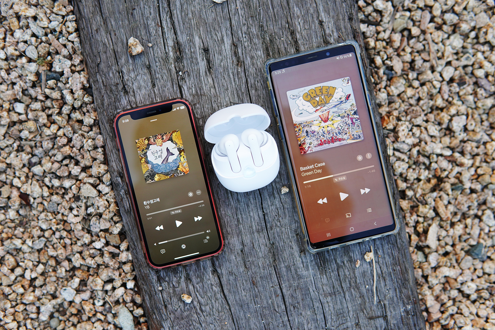 이어버드는 좌우 구분 없이 한쪽으로만 사용할 수 있으며 착용감지 센서는 장착되지 않았습니다. 제품의 가격을 생각한다면 단점이나 아쉽게 느껴지지는 않았습니다.