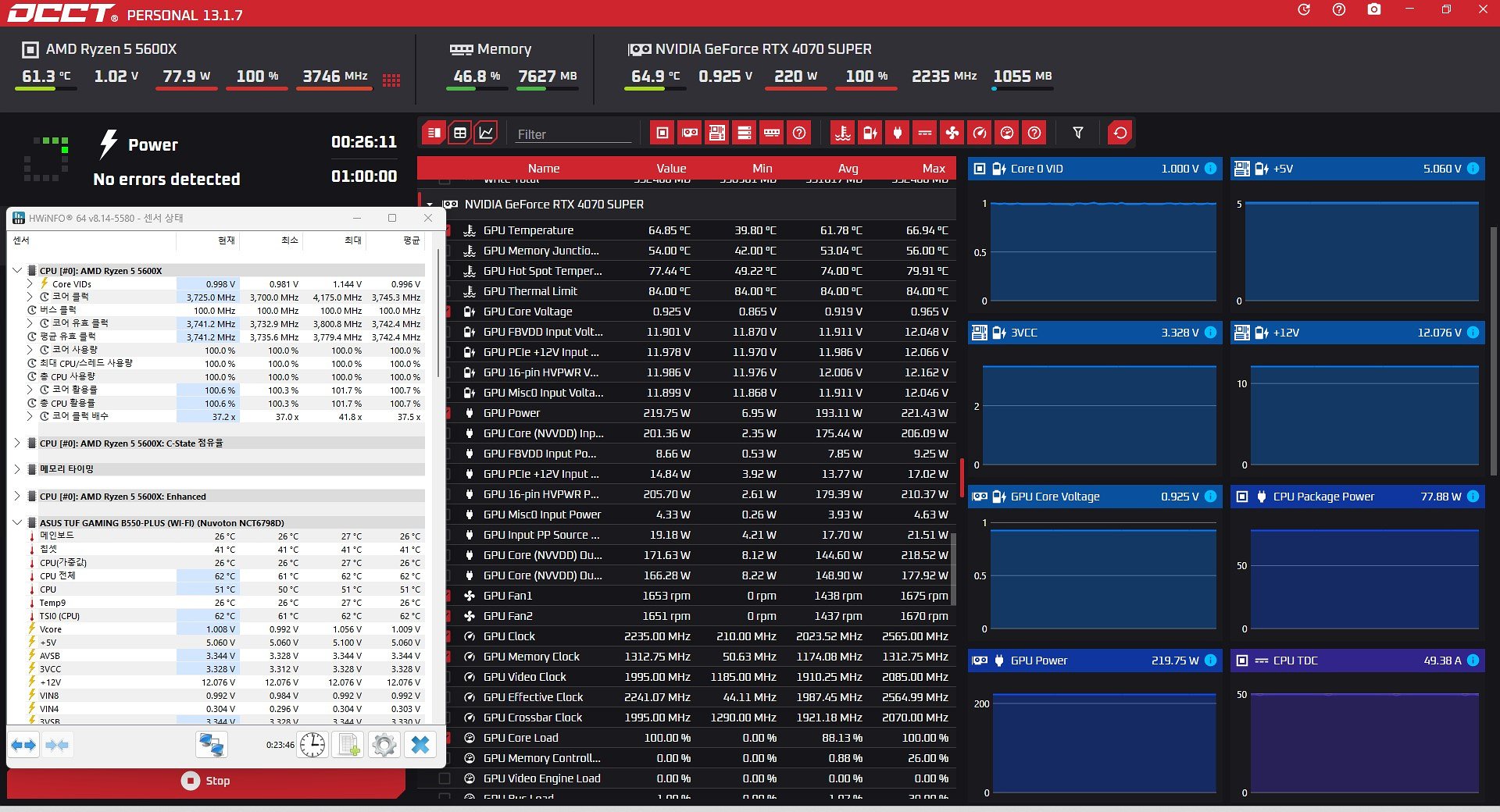 테스트를 진행한 시스템은 5600X & 4070 Super입니다. 아마도 일반 사용자들이라면 750W, 850W를 가장 많이 구입할 테고 이 정도 출력이라면 CPU에 따라 조금 달라지겠지만 4070, 4080 79000XT까지는 무리 없이 사용할 수 있는 수준입니다. 4090이나 향후에도 5090을 계획한다면 여유 있게 1k 이상으로 구입하는 걸 추천합니다.