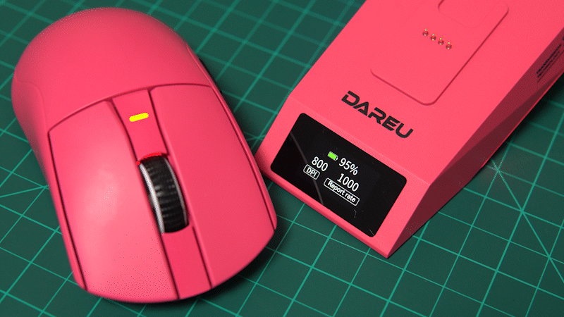 다얼유 A950GD를 사용하기 전에는 충전독의 디스플레이에 대해 그렇게 큰 기대를 하지 않았었는데 LCD를 통해 마우스의 상태를 바로바로 확인하니 생각보다 상당히 좋았습니다. 50 단위로 바꿀 수 있는 5단계의 DPI 역시 준수한 편이었고 무엇보다 가벼운 무게와 함께 손에 감기는 그립감이 정말 좋았습니다. 비대칭 쉘을 더 좋아하는 편임에도 그립감으로는 딱히 아쉽거나 불만족스러움을 찾을 수 없었습니다. 저소음까지는 아니지만 후아노 스위치의 클릭감도 좋아서 게임뿐 아니라 일반적인 사무용으로도 충분히 사용할 수 있었습니다.