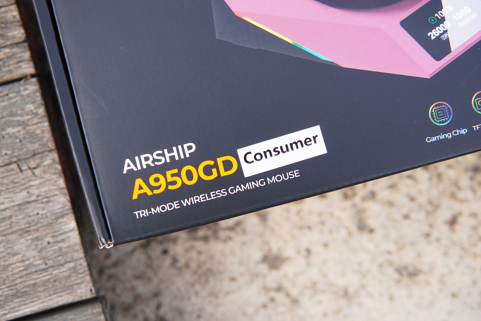 박스의 설명에는 A950GD의 가장 큰 특징인 트라이모드(Tri-mode), PAW3395 센서, 62g의 가벼운 무게에 대해 소개가 되어있는데 앞쪽의 충전 독(dock)이 가장 눈에 들어오네요.